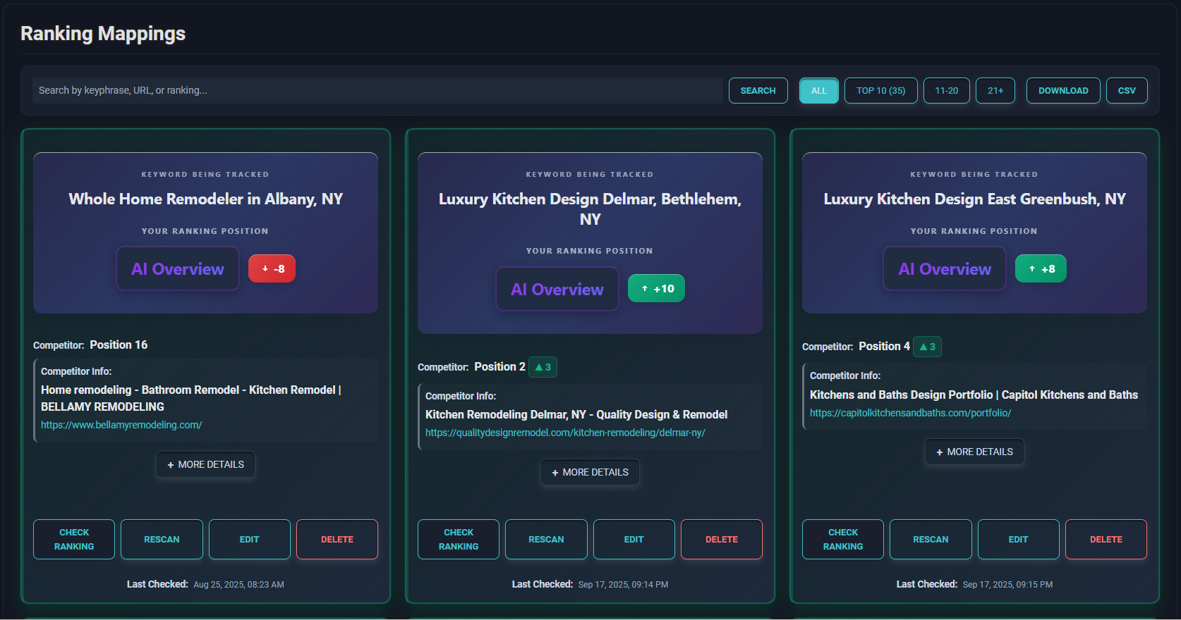 Athena SEO Live AI © Google & Competitor Ranking Dashboard